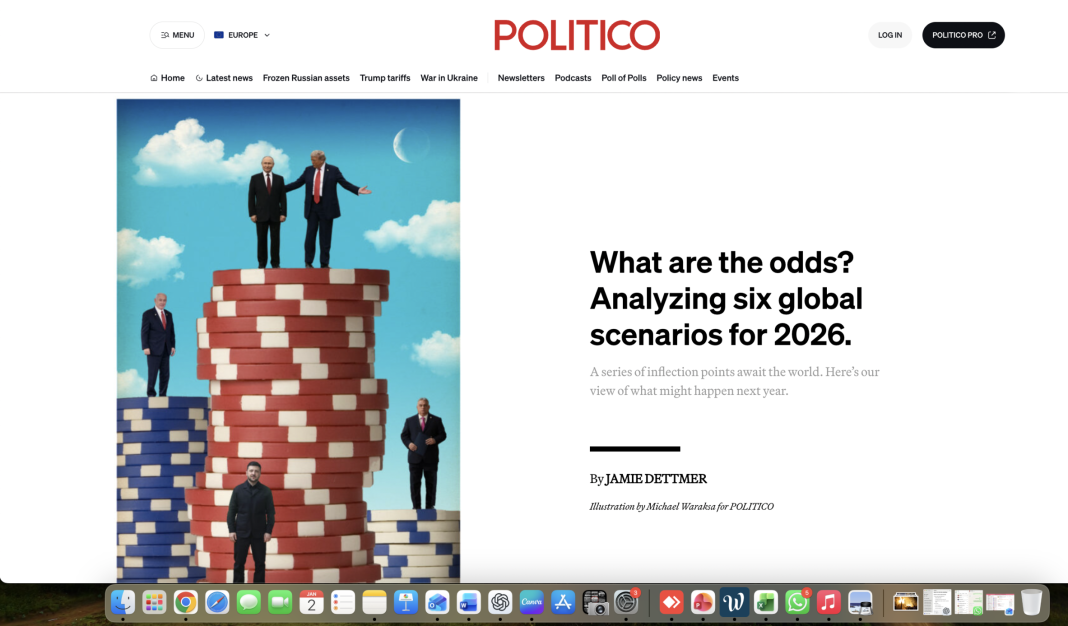 Totuși, un avertisment. Politica, în această epocă dată peste cap, este și mai imprevizibilă decât sportul. Iar cu Donald Trump — mereu imprevizibil — la Casa Albă, cu atât mai mult. După un an amețitor la începutul celui de-al doilea mandat, iată cum vede Politico desfășurarea lucrurilor la nivel global în 2026.