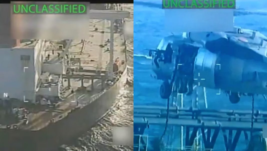 Un oficial american a declarat că elicopterele care au transportat echipele la bordul petrolierului au decolat de pe portavionul USS Gerald R. Ford.