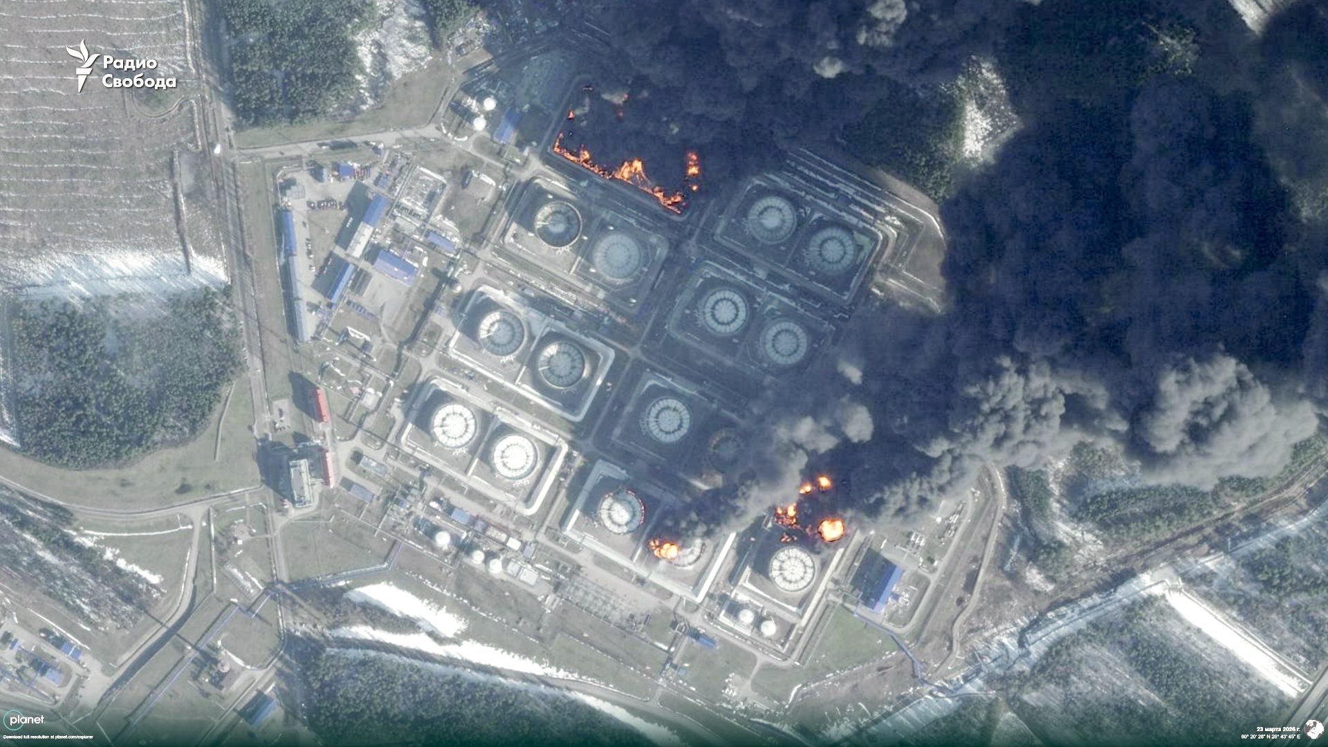 Un atac ucrainean cu drone a declanșat un incendiu la rezervoarele de combustibil din portul Primorsk, cel mai mare terminal petrolier din vestul Rusiei.