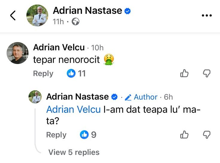 Iar la un alt mesaj, în care era numit „țepar nenorocit”, Năstase a scris: