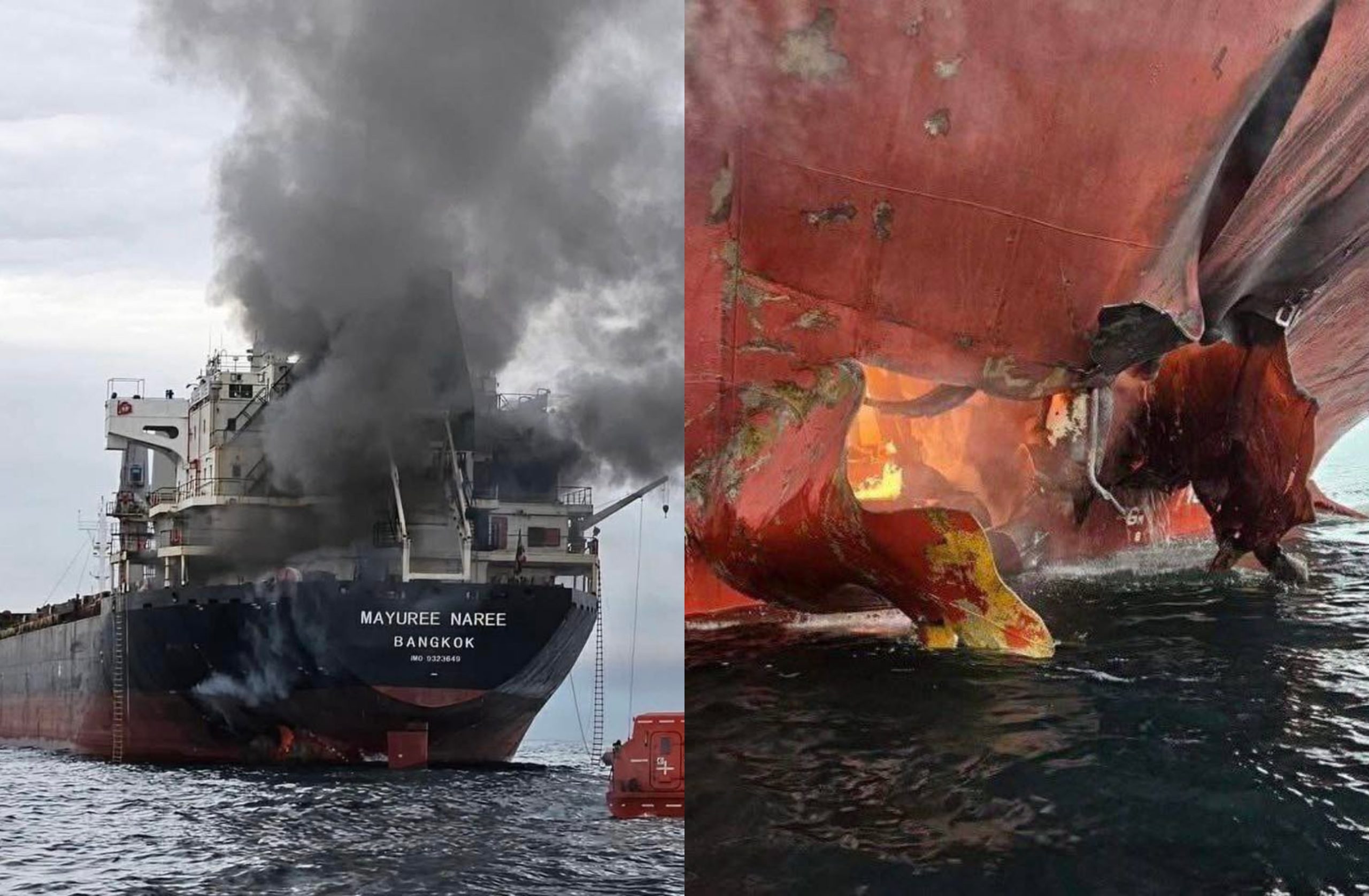 Marina Thailandei a anunțat că o navă portcontainer sub pavilion thailandez, cu 23 de persoane la bord, a fost atacată în timp ce tranzita Strâmtoarea Hormuz, potrivit Reuters. Fotografii publicate arată fum negru ridicându-se de pe vasul Mayuree Naree.